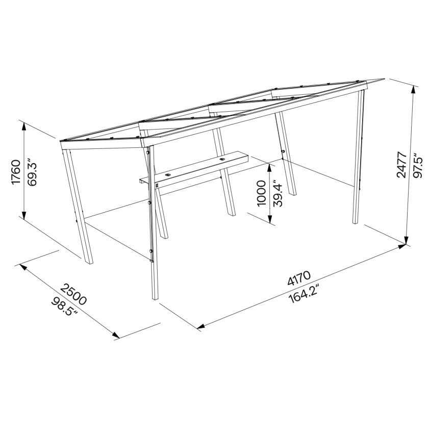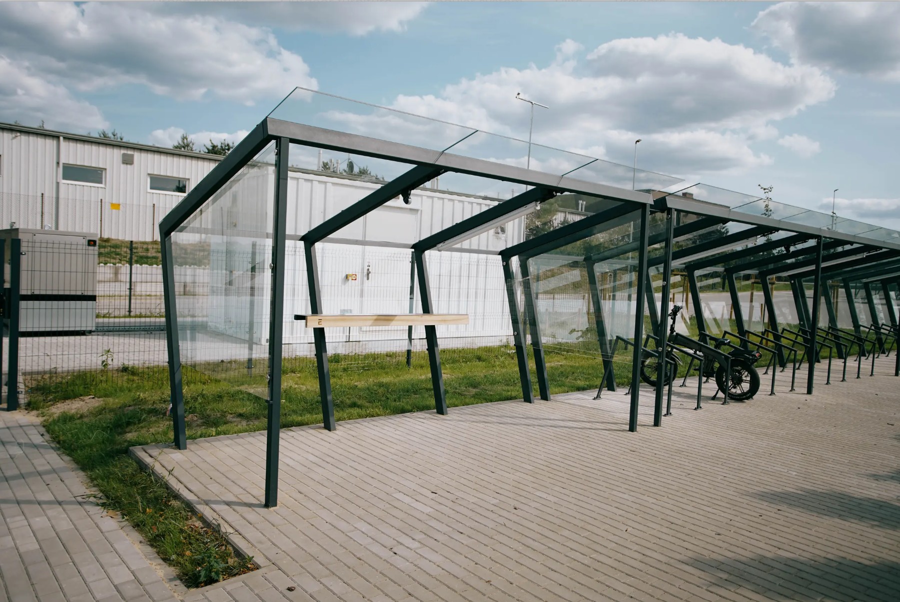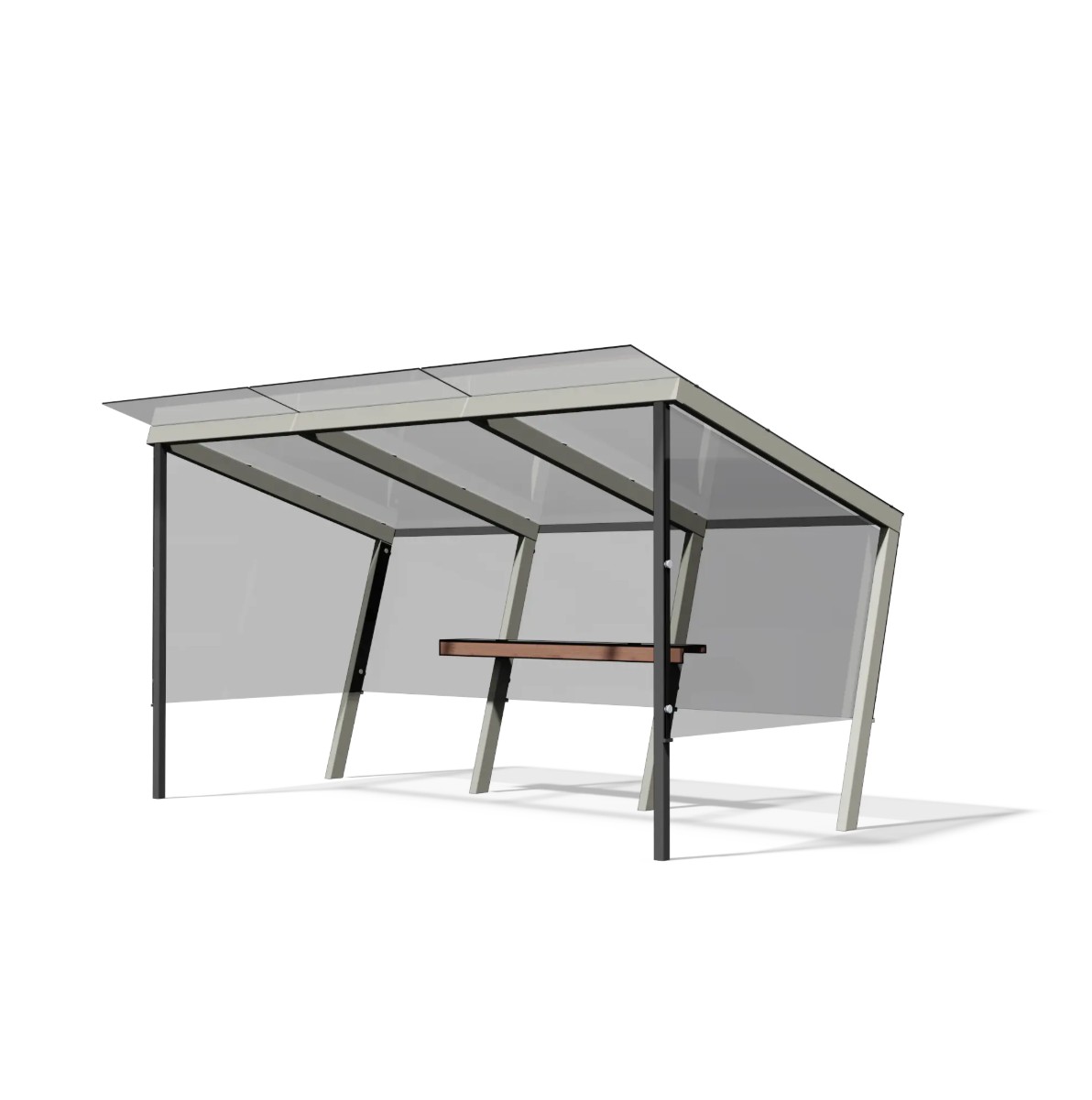 La conception vitrée de la toiture assure une évacuation naturelle des eaux de pluie, garantissant un écoulement maîtrisé vers l’arrière de l’abri, sans impact sur le confort des utilisateurs ni sur l’esthétique globale.