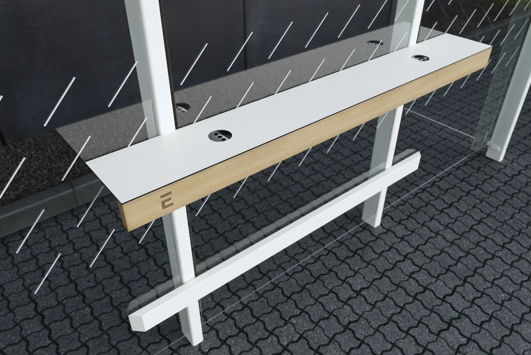 L’abri fumeurs ORLY est équipé d’une étagère en bois intégrée, pensée pour le confort des utilisateurs. Elle intègre deux cendriers à charnières, facilitant la collecte des mégots et contribuant activement à la propreté des zones fumeurs et à la réduction des déchets au sol.