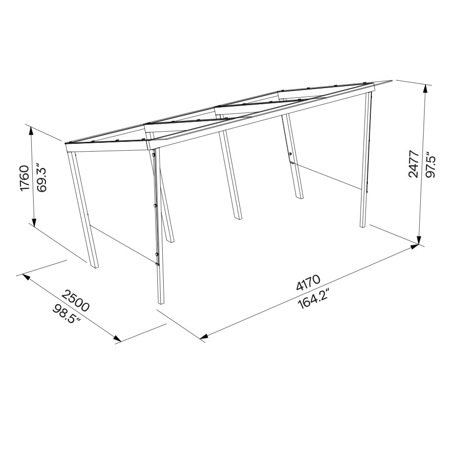 La conception de la couverture permet un écoulement naturel des eaux de pluie vers l’arrière de l’abri, assurant une évacuation discrète et efficace, sans ajout d’éléments visibles, pour un rendu esthétique soigné.
