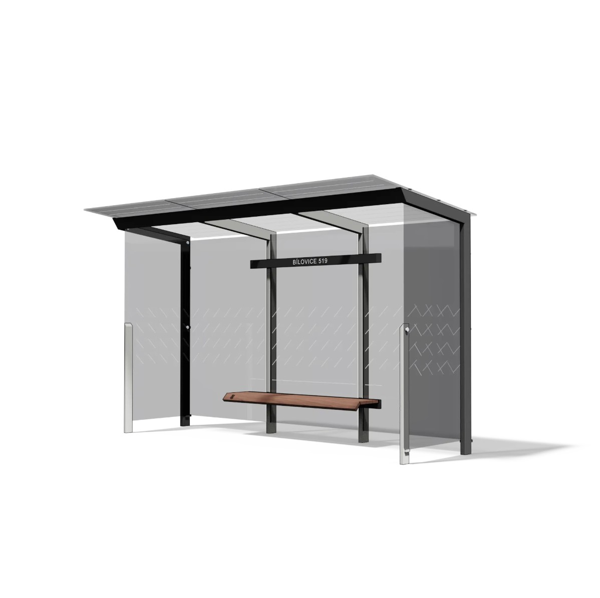 Abribus L4170mm avec parois latérales et banc PANTIN