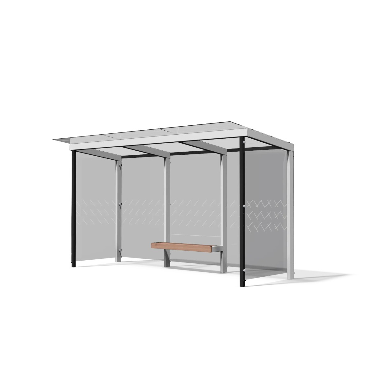Ce modèle intègre un banc urbain ergonomique, conçu pour offrir une assise confortable et durable. Il contribue à créer un espace d’attente fonctionnel et accueillant, adapté aux flux réguliers de voyageurs et aux usages quotidiens de l’espace public.
