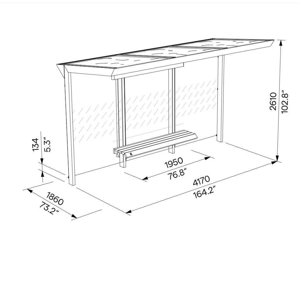 L’abribus L4170 mm dispose d’un banc en bois intégré, confortable et ergonomique, idéal pour améliorer l’accueil des voyageurs et rendre l’attente plus agréable. Ce mobilier s’intègre harmonieusement dans les espaces publics de la commune.
