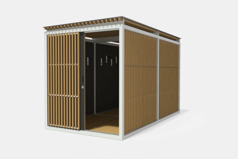 La structure porteuse de la Collection Y3 est en acier, avec une toiture et des parois en verre imprimé, fixée par des éléments en acier inoxydable. Elle peut accueillir dix vélos, les supports à vélos inclus. L’abri est constitué de profilés en acier fermés et soudés. Sa surface est protégée par un traitement en acier galvanisé à chaud thermolaqué (suivant notre nuancier RAL) adapté à une salinité élevée. Les parois sont en verre trempé de sécurité de 8 mm d’épaisseur, avec impression, et le toit est en verre feuilleté trempé (VSG ESG) de 12 mm d’épaisseur, également avec impression. Le système d’ancrage flexible permet de fixer les éléments en verre à la structure. Les eaux de pluie ou autres précipitations s’évacuent au sol, à l’arrière du toit.