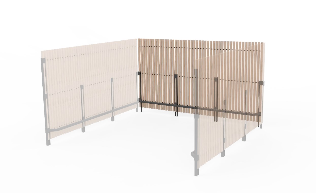 Le cache-conteneurs BLIGNY est un module de connexion conçu pour s’intégrer entre deux segments dans un ensemble de cache-poubelles. Il permet d’étendre facilement une installation existante afin de masquer plusieurs bacs à déchets tout en maintenant une continuité esthétique et fonctionnelle.