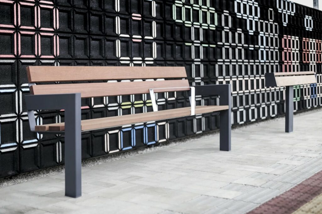 Le Banc long bois accoudoirs ARNAGE de la Collection U1 est proposé en bois massif tropical ou en thermo frêne, huilé ou non au choix, structure en acier galvanisé à chaud thermolaqué avec RAL standard au choix adapté à une salinité élevée. Existe en 2 dimensions.