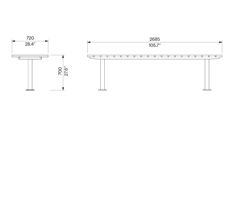 Avec ses 2700 mm de longueur, la table YZERNAY est idéale pour les grands espaces collectifs. Elle encourage la rencontre, les repas en plein air et les échanges entre générations, tout en offrant un confort d’assise optimal et une esthétique chaleureuse.