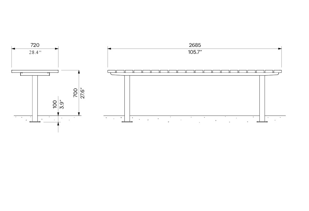 La table YZERNAY – longueur 2700 mm est pensée pour offrir une solution conviviale et durable d’aménagement extérieur. Son design long et équilibré, associé à ses lames de bois disposées verticalement, confère une allure élégante et contemporaine, parfaitement adaptée aux environnements urbains et paysagers.