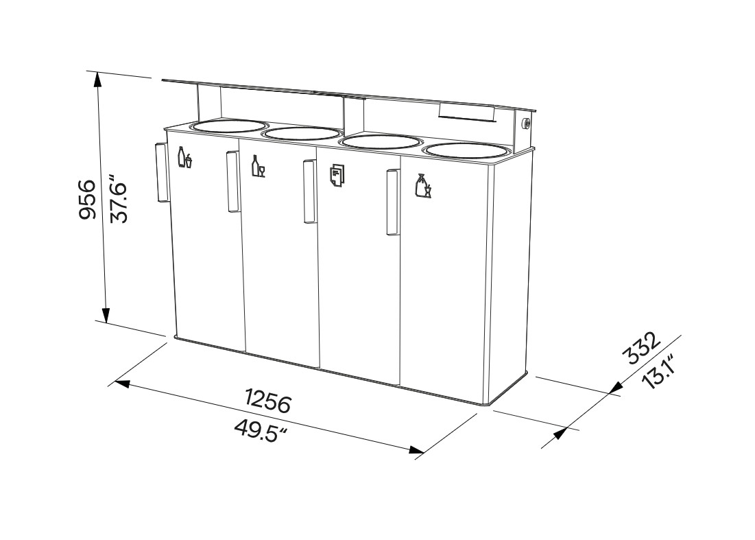 Dotée de quatre compartiments de 38 litres, elle offre un tri sélectif clair et structuré, pour une capacité totale de 152 litres.