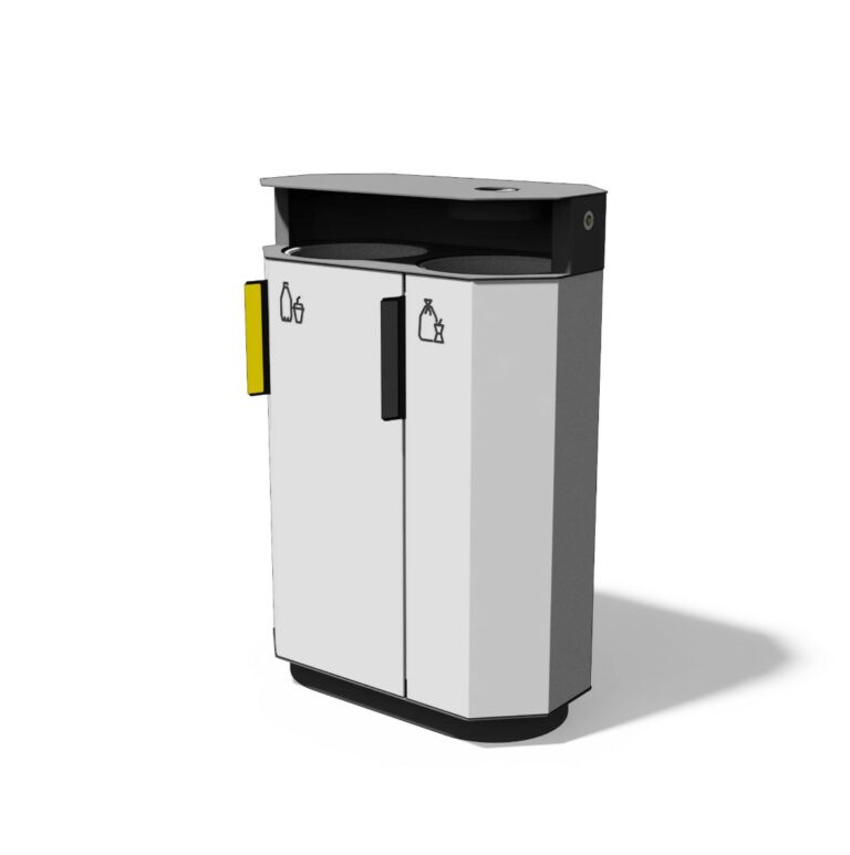 La corbeille de tri sélectif LA PLAGNE a été pensée pour combiner praticité, longévité et intégration élégante dans tous types d’espaces publics. Conforme à la Loi AGEC (Anti-Gaspillage pour une Économie Circulaire), elle offre un tri clair et performant grâce à ses deux compartiments de 38 litres chacun, soit une capacité totale de 76 litres, complétée d’un cendrier intégré pour une gestion complète des déchets extérieurs.