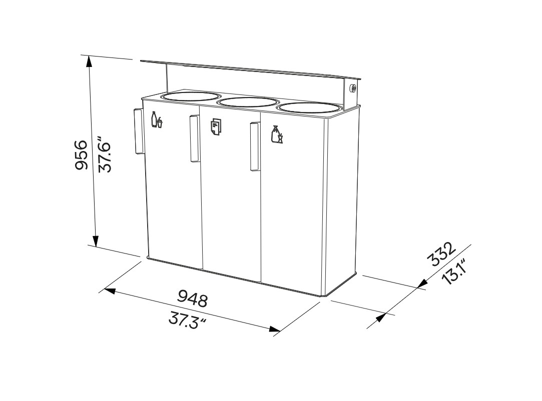 Avec ses trois compartiments de 38 litres, elle offre un tri sélectif clair, intuitif et efficace, pour une capacité totale de 114 litres.