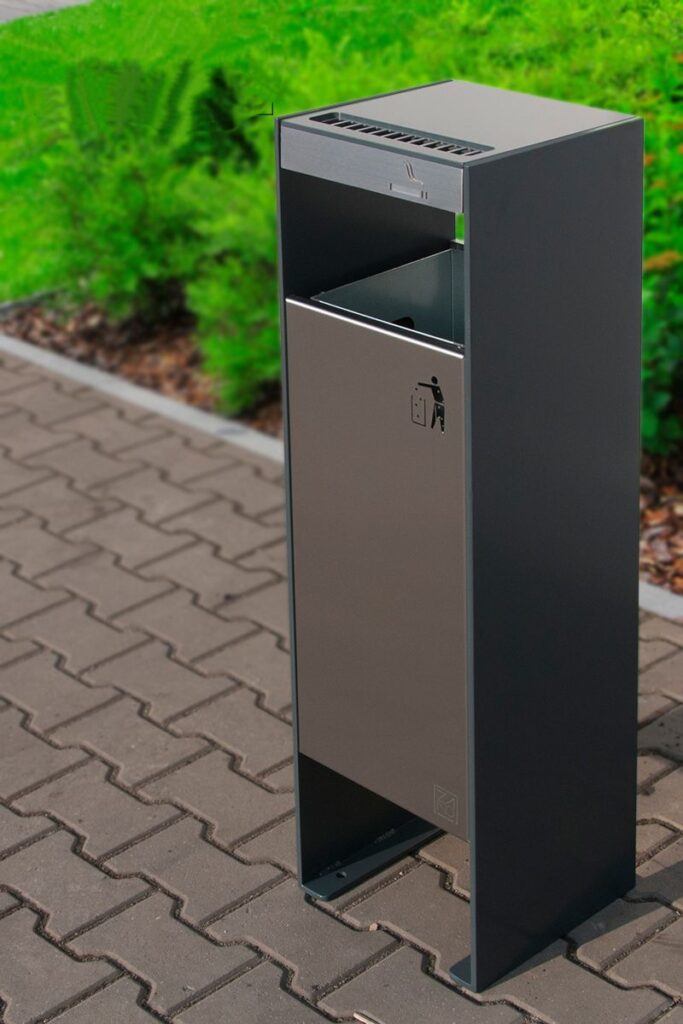 La corbeille Sim est disponible en acier carbone galvanisé peint (selon nuancier RAL)  ou en acier inoxydable. Cette corbeille est proposée avec ou sans cendrier, et se décline en version rectangulaire (100l) et en corbeille de tri. La contenance de la corbeille Sim est de 52 litres.