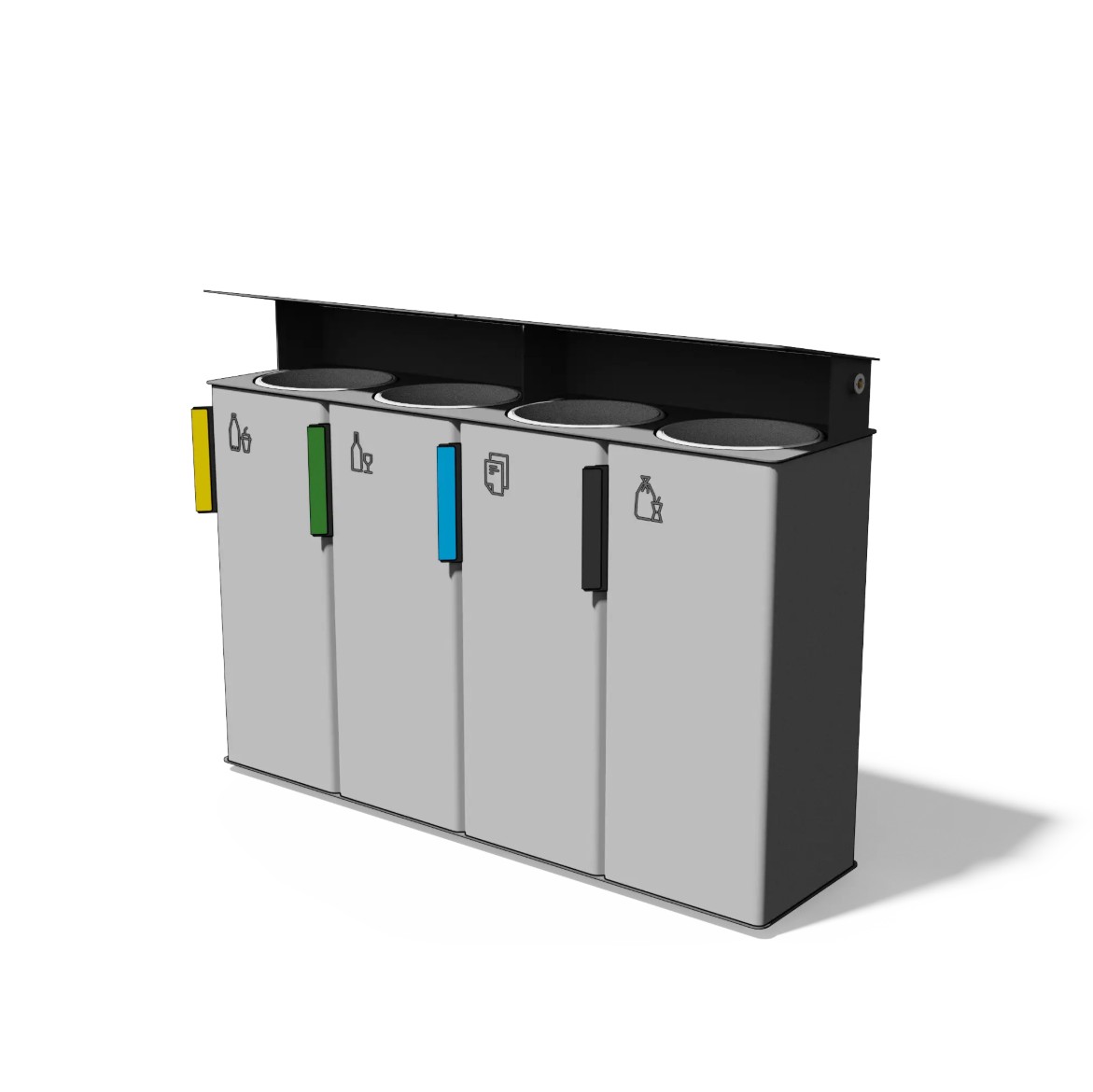 Corbeille tri sélectif tout acier avec protège pluie 4 flux AGDE