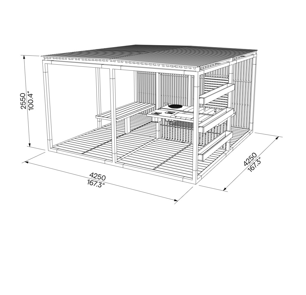 Techniquement, la structure est proposée en Mélèze massif européen certifié FSC ou en acier galvanisé à chaud, assurant résistance mécanique, stabilité et tenue durable face aux conditions climatiques. Les composants en bois issu de forêts gérées durablement (FSC) apportent une finition naturelle et qualitative, en adéquation avec les exigences actuelles d’aménagement extérieur responsable et pérenne.