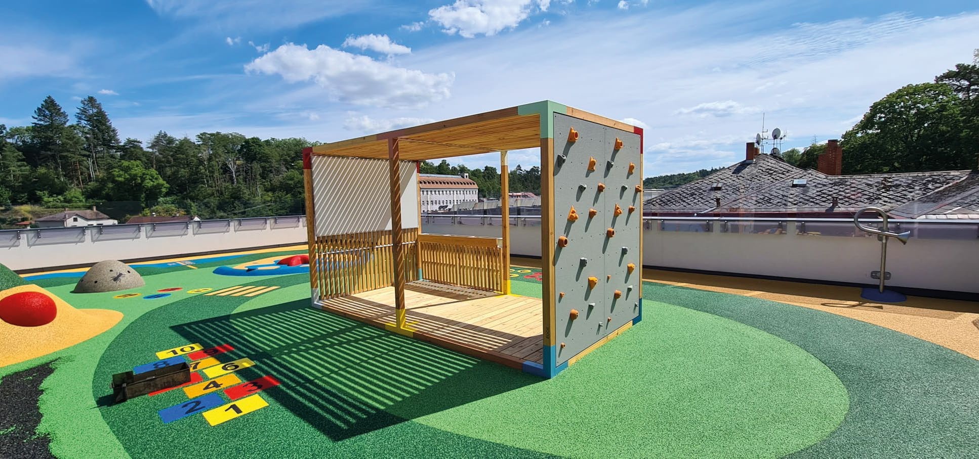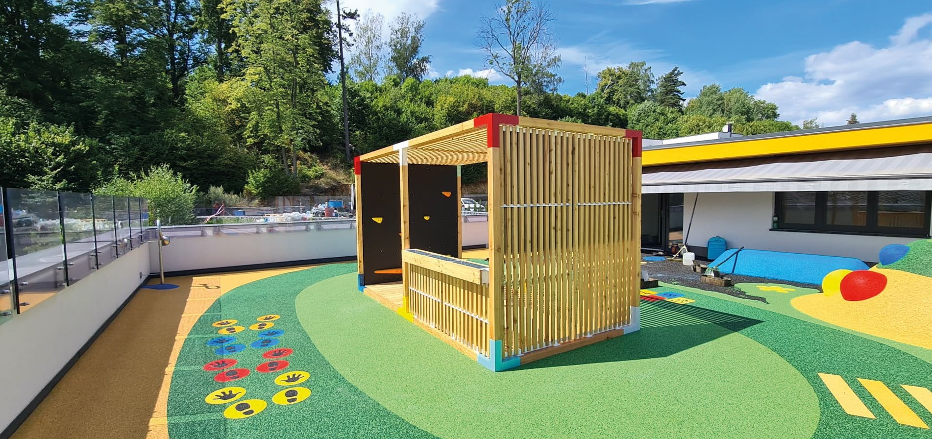 Sur le plan technique, la pergola scolaire LEVA est proposée en Mélèze massif européen certifié FSC ou en acier galvanisé à chaud, garantissant solidité, stabilité et résistance durable aux conditions climatiques. Les éléments en bois issu de forêts gérées durablement renforcent l’esthétique naturelle de l’ensemble tout en répondant aux exigences des projets d’aménagement extérieur responsable pour l’éducation.
