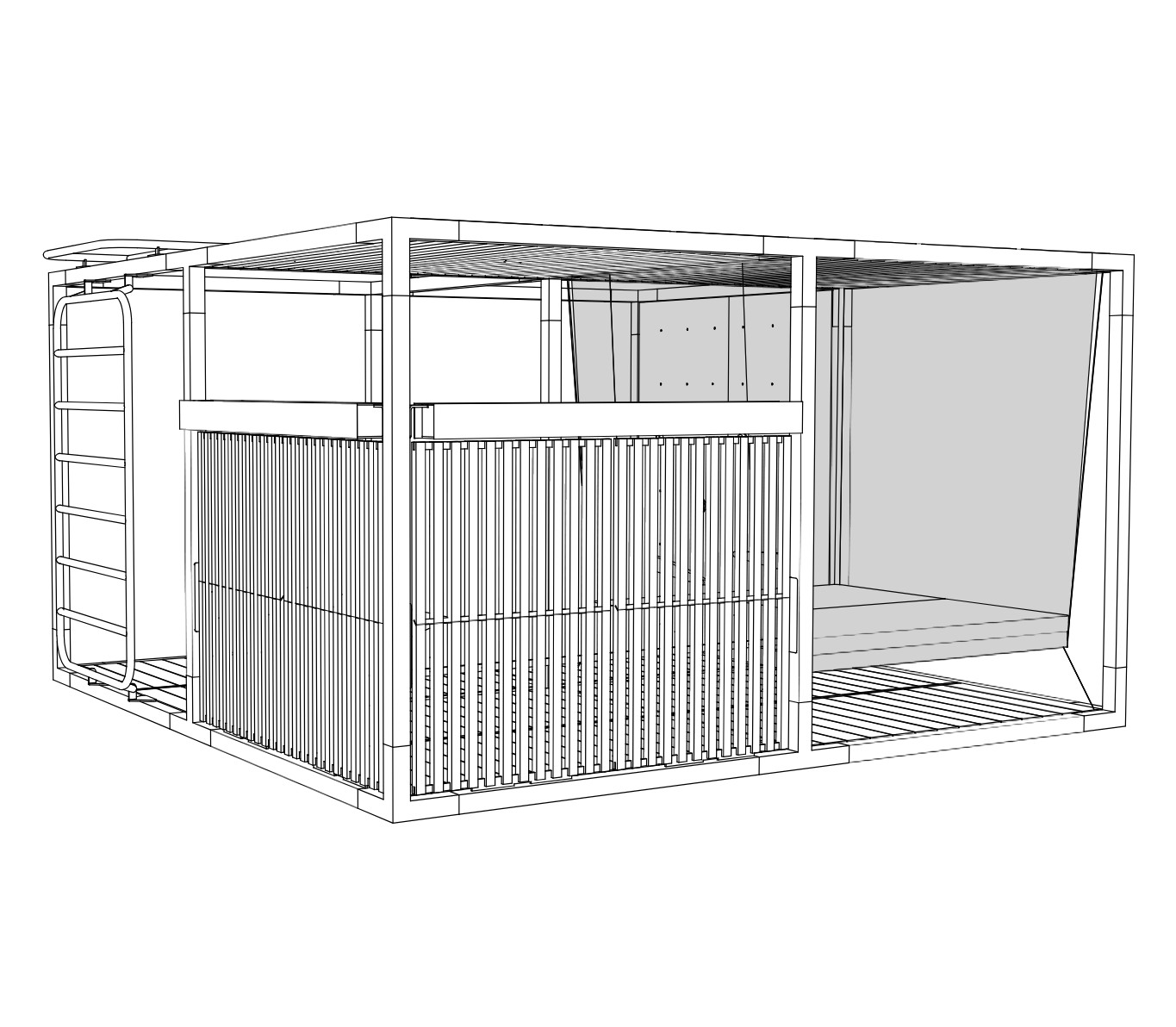 Sur le plan technique, la structure est disponible en Mélèze massif européen certifié FSC ou en acier galvanisé à chaud, garantissant robustesse, stabilité et résistance aux intempéries. Les éléments en bois issu de forêts gérées durablement (FSC) assurent une finition naturelle et qualitative, répondant aux exigences des projets d’aménagement extérieur durable pour l’hôtellerie, les entreprises et les particuliers.