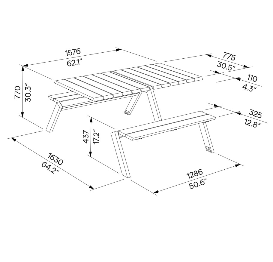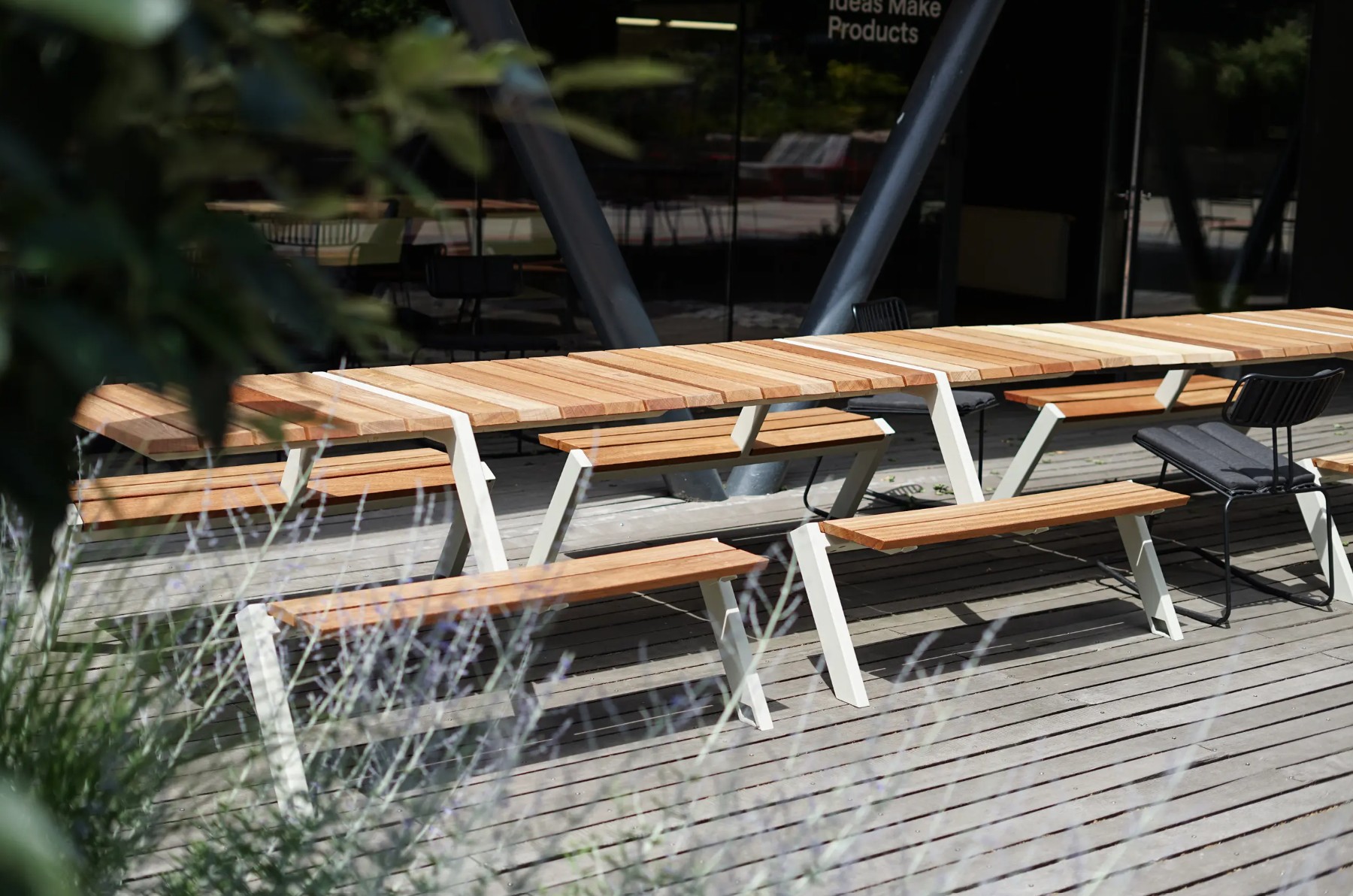 Alliant bois et acier dans un design élégant et durable, le pique-nique SET GUÉRANDE incarne le mobilier urbain convivial et responsable, conçu pour traverser le temps et embellir les lieux de vie collectifs.