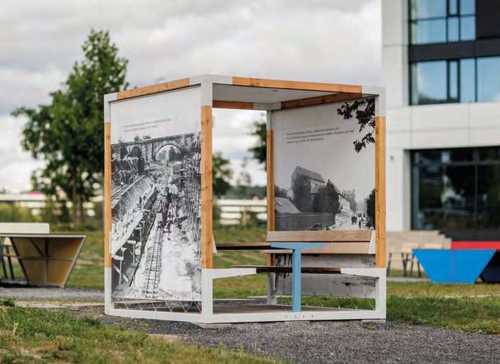 Pensée comme un véritable support scénographique outdoor, elle accueille des bannières sérigraphiées personnalisées représentant le thème d’une exposition, d’un parcours pédagogique, d’un événement artistique ou d’une communication institutionnelle. Elle devient ainsi un outil de valorisation culturelle pour les municipalités souhaitant dynamiser leurs espaces publics et renforcer l’attractivité du territoire.