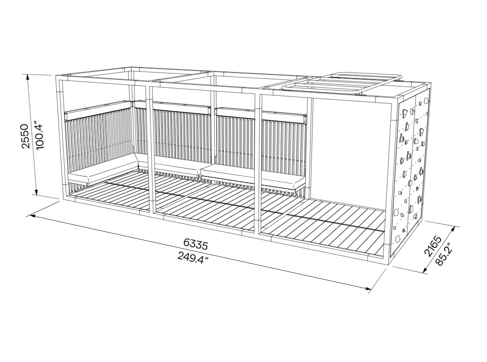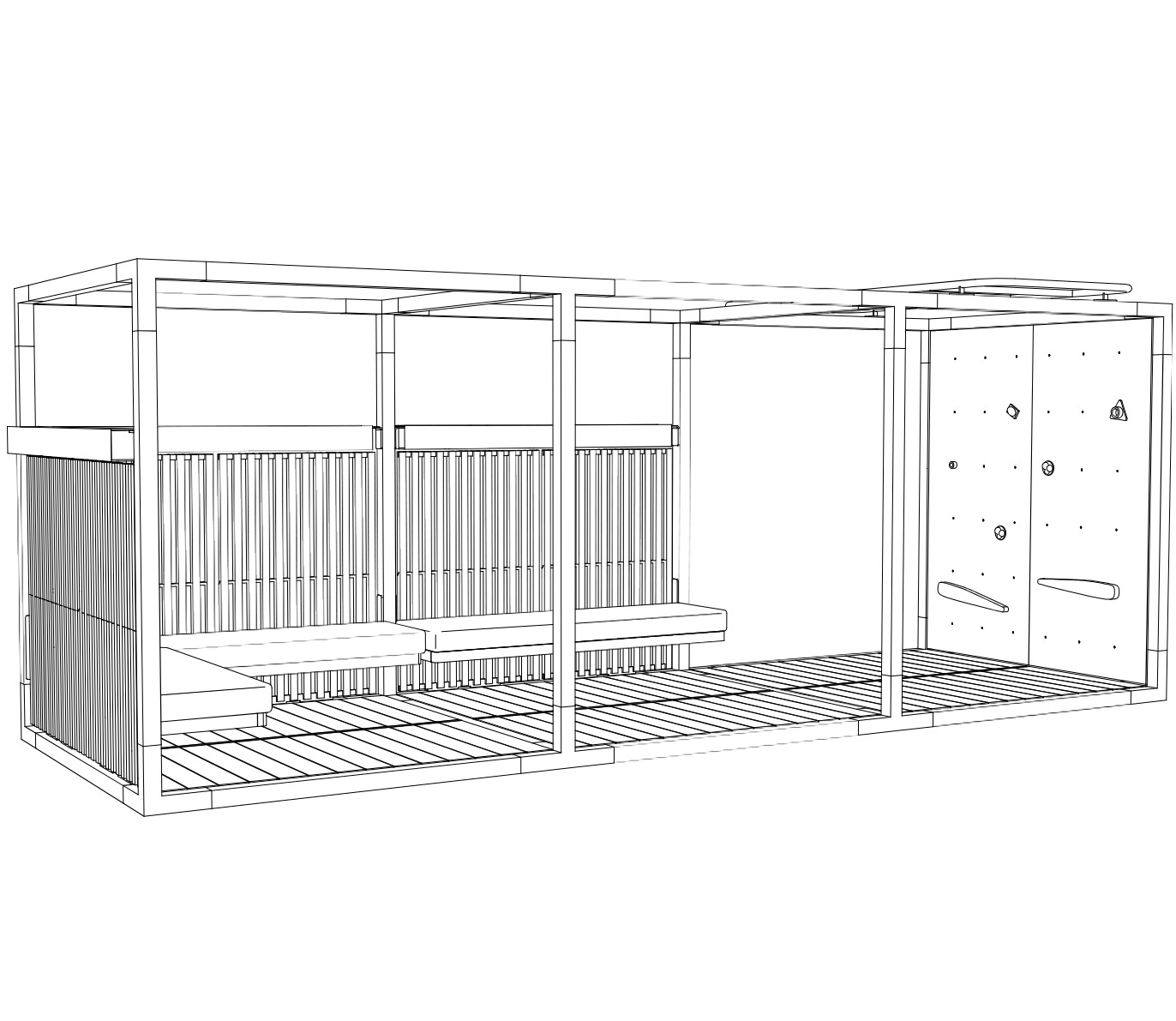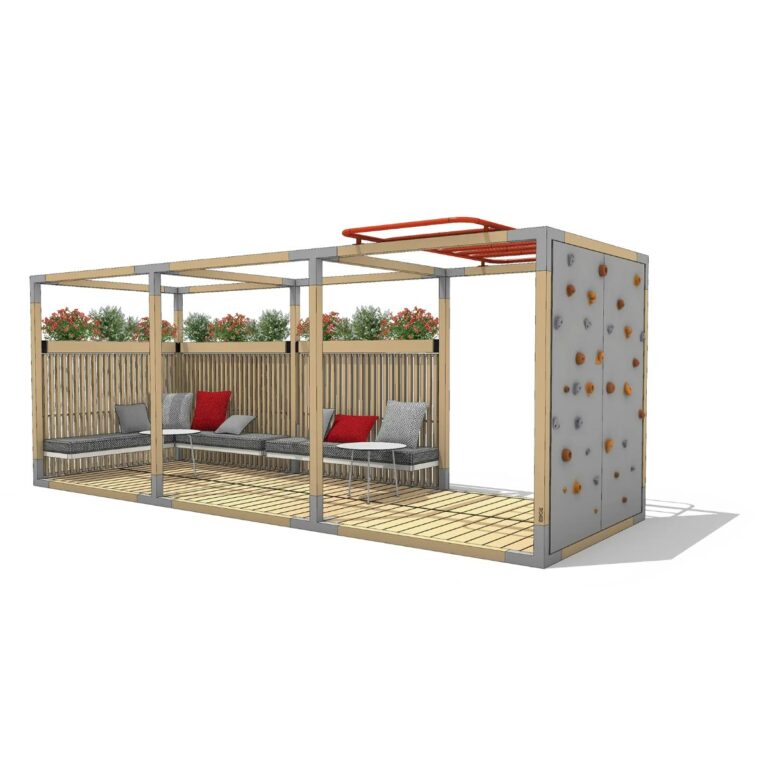 Pensée pour encourager le bien-être et l’activité physique au quotidien, la structure peut intégrer des murs d’escalade et des espaliers, offrant un espace ludique et sportif propice à la cohésion d’équipe et à la remise en mouvement.