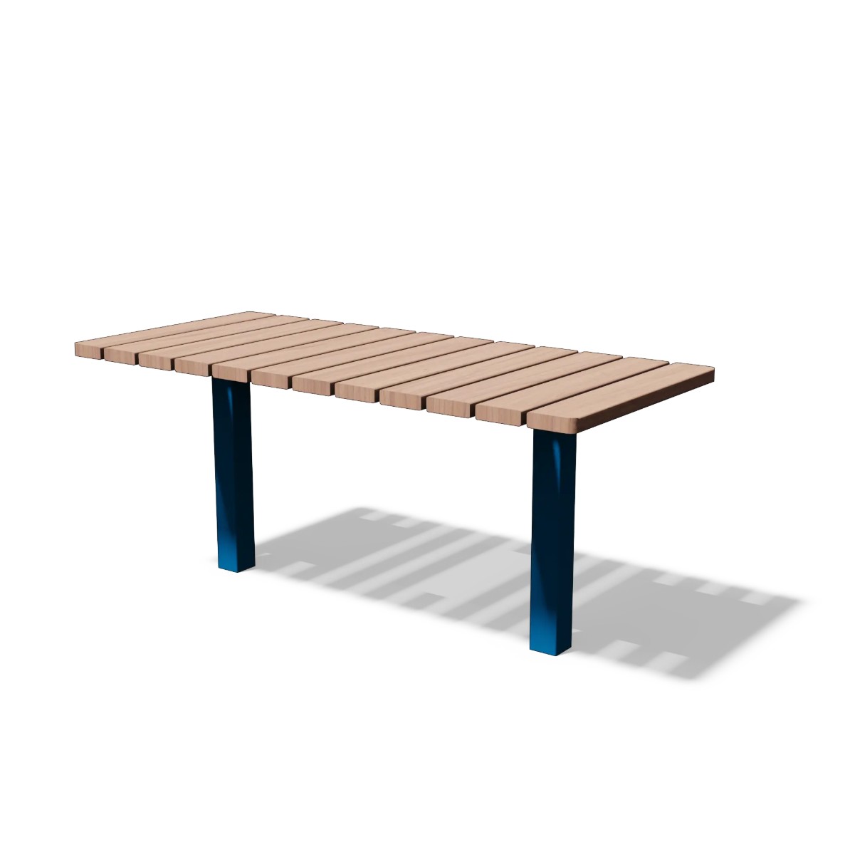 La table repose sur une structure en acier galvanisé à chaud, garantissant solidité et protection face aux intempéries. Le thermolaquage, disponible selon le nuancier RAL, permet d’adapter la couleur à l’identité visuelle du lieu.