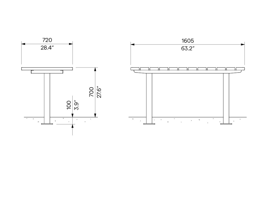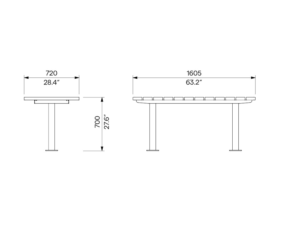 Avec sa longueur de 1600 mm, la table LA BAULE offre un espace confortable pour accueillir plusieurs personnes, tout en restant adaptée aux espaces publics de taille moyenne. Son design associant acier et bois vertical crée une ambiance chaleureuse, propice aux échanges et à la détente.