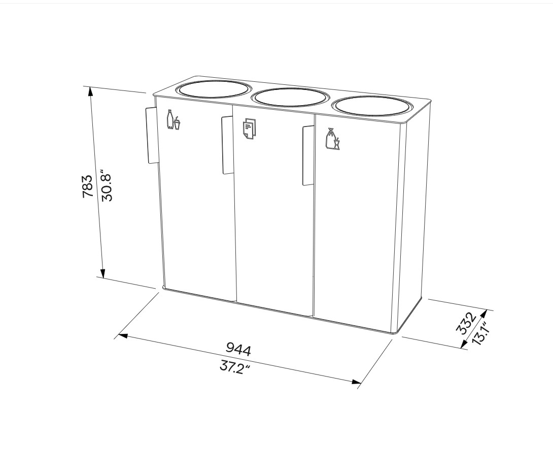 Les trois flux sont clairement identifiés par pictogrammes ou codes couleur, facilitant une utilisation intuitive pour tous les usagers. Conçue pour la praticité au quotidien, la corbeille LIAUSSON bénéficie d’une ouverture aisée, d’une hauteur ergonomique et d’un entretien simplifié, garantissant une maintenance rapide et efficace.