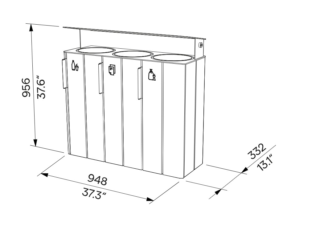 Dotée de trois compartiments de 38 litres chacun, elle offre un tri sélectif clair, intuitif et efficace, pour une capacité totale de 114 litres.