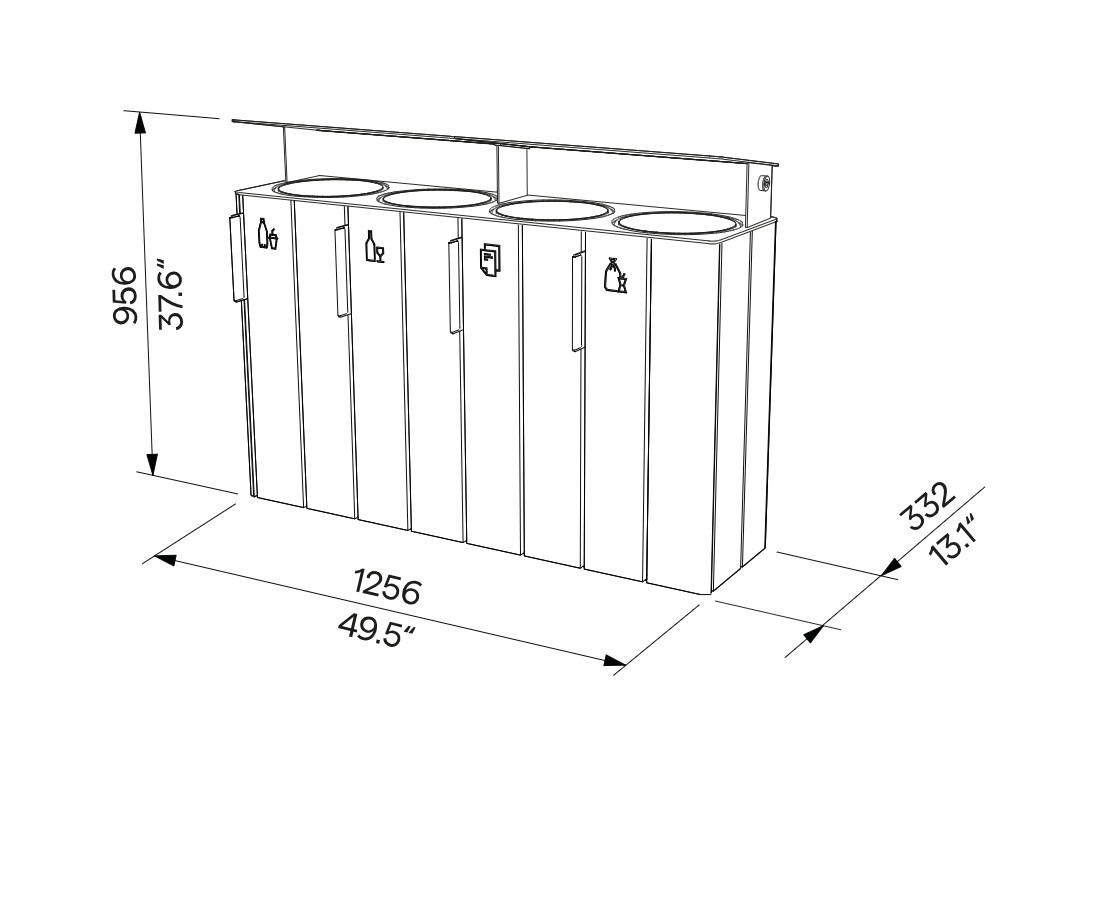 Dotée de quatre compartiments de 38 litres chacun, elle offre un tri sélectif clair, intuitif et efficace, pour une capacité totale de 152 litres.